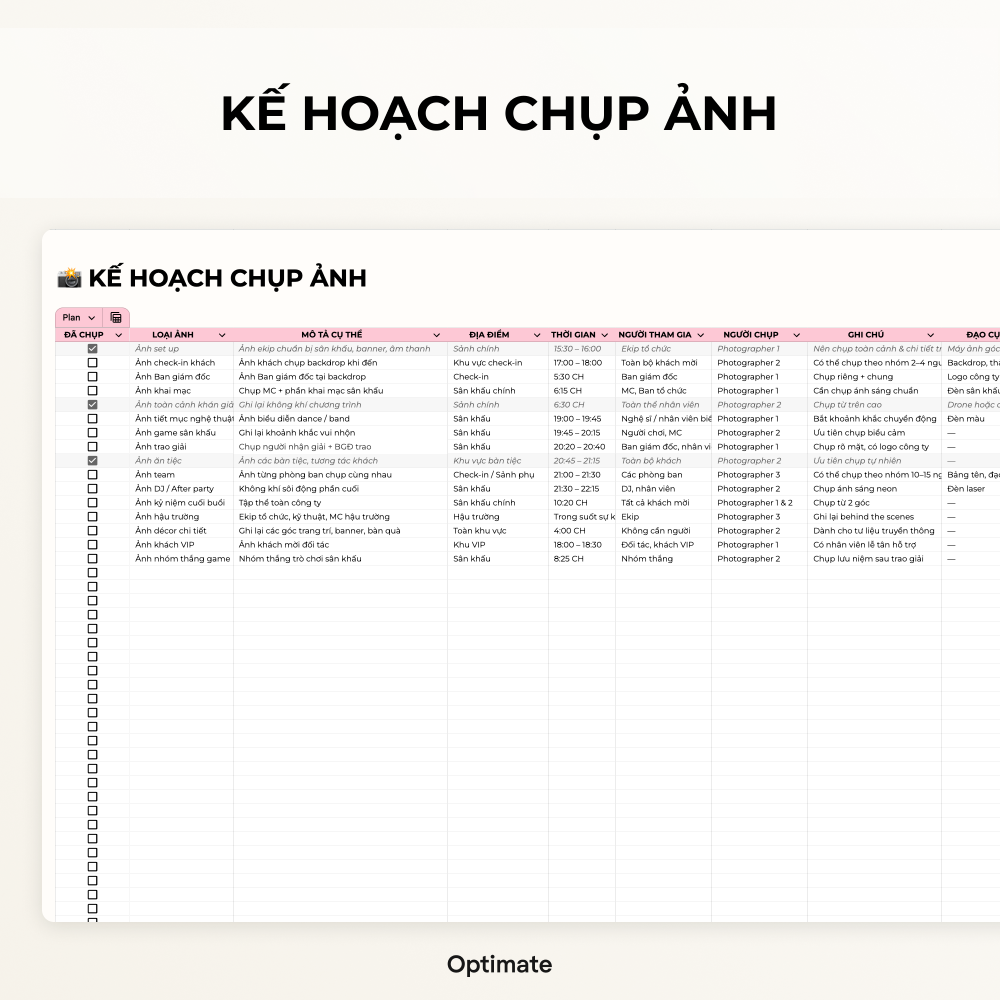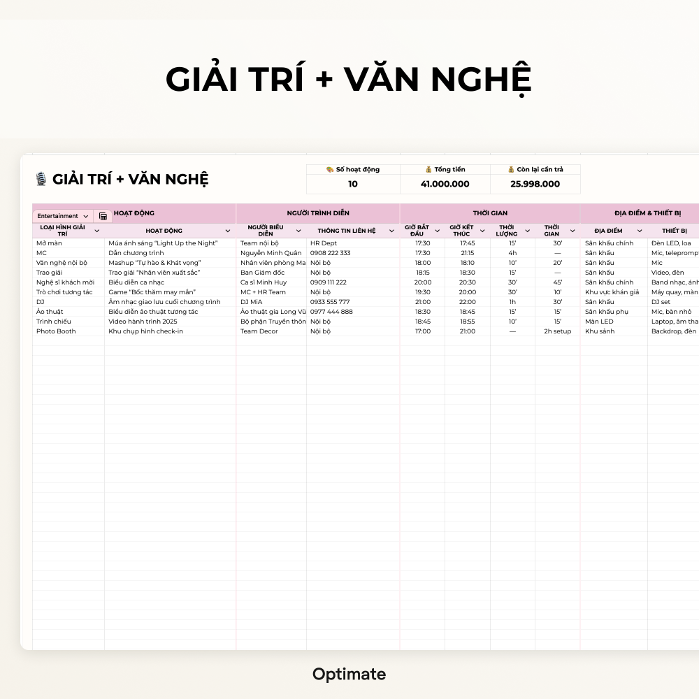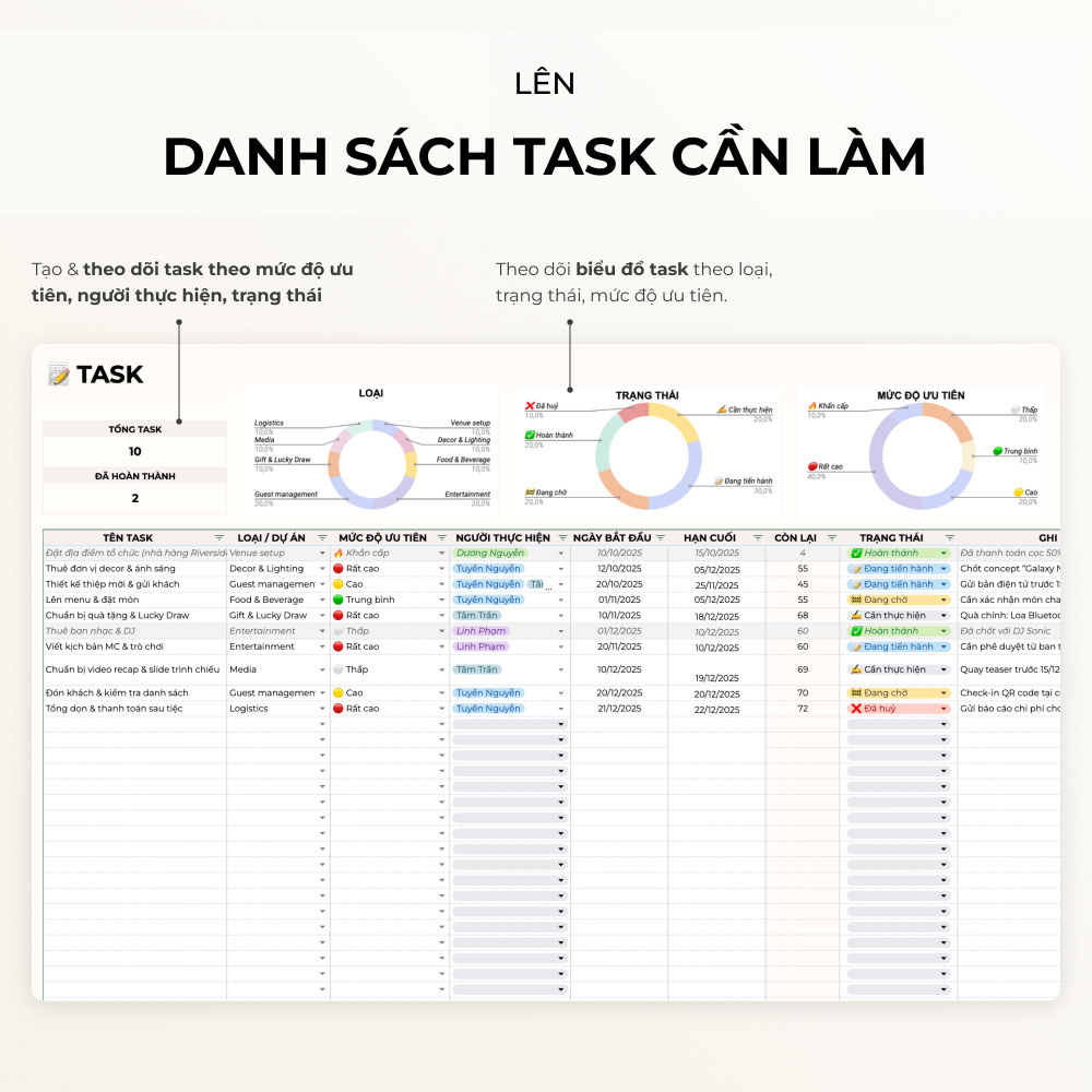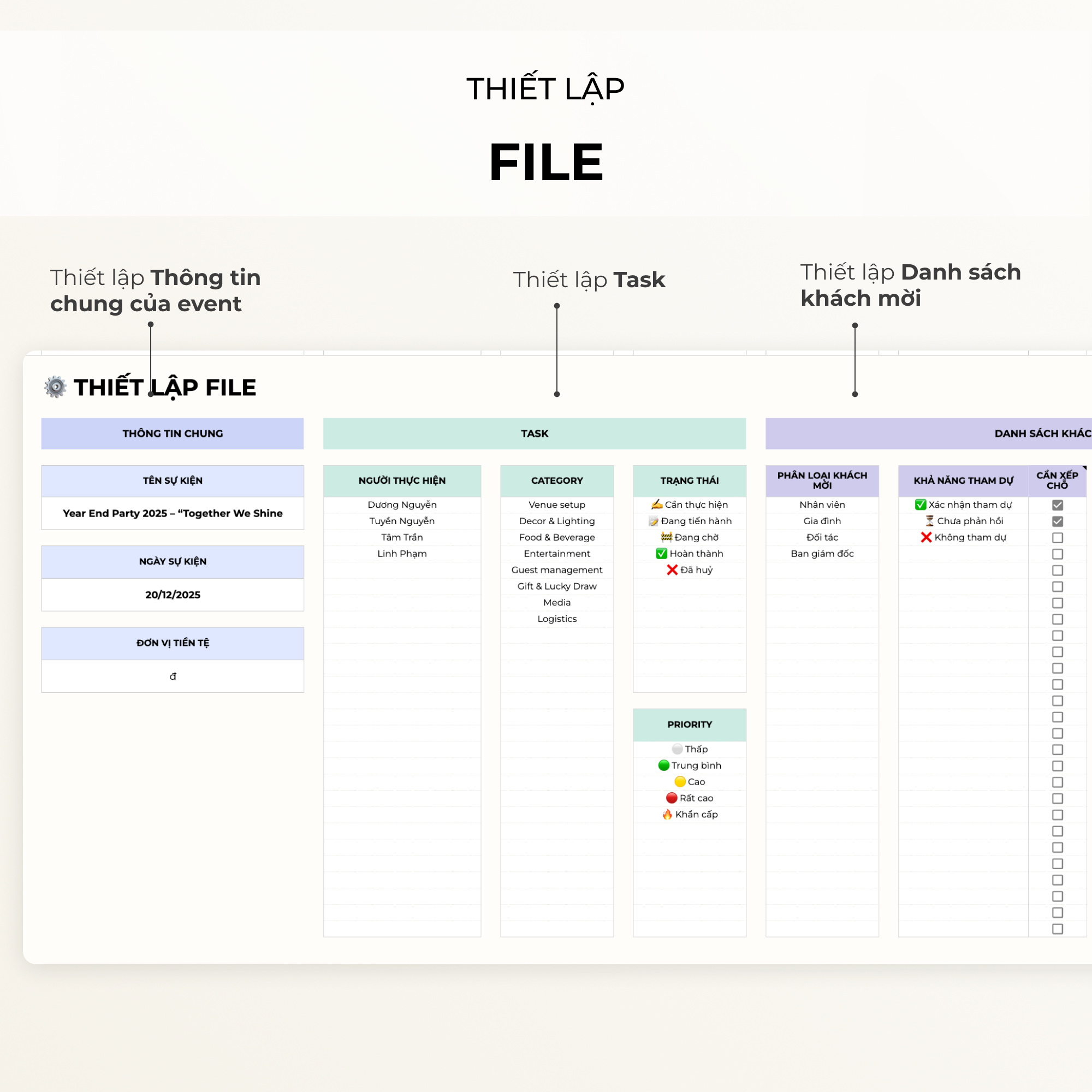 Kế hoạch – Quản lý sự kiện – Event Planner – Google sheets Template – Excel