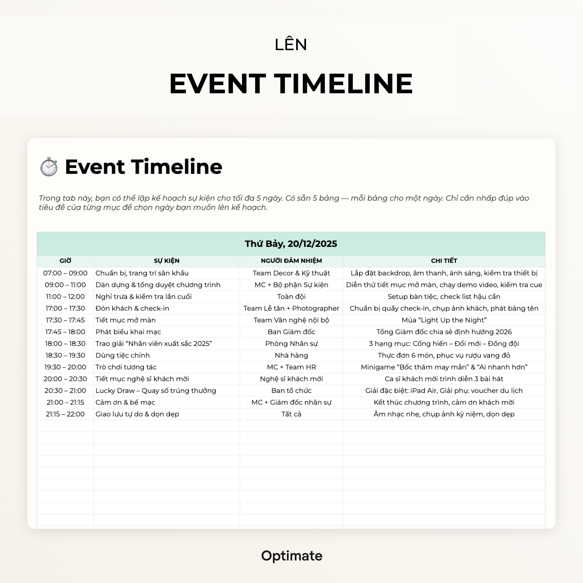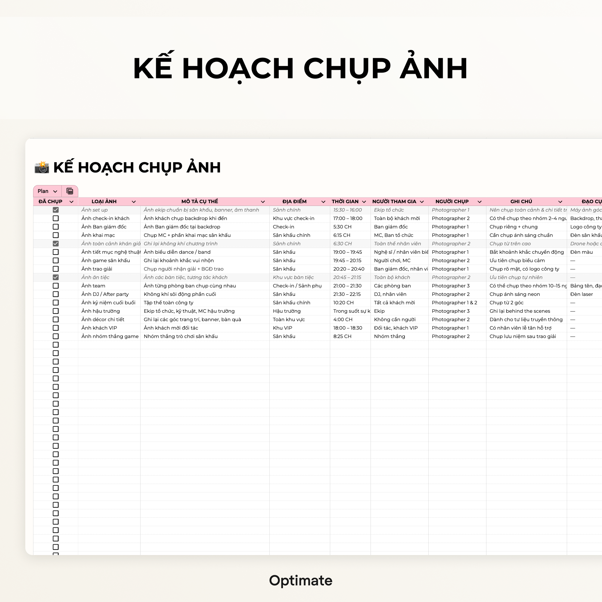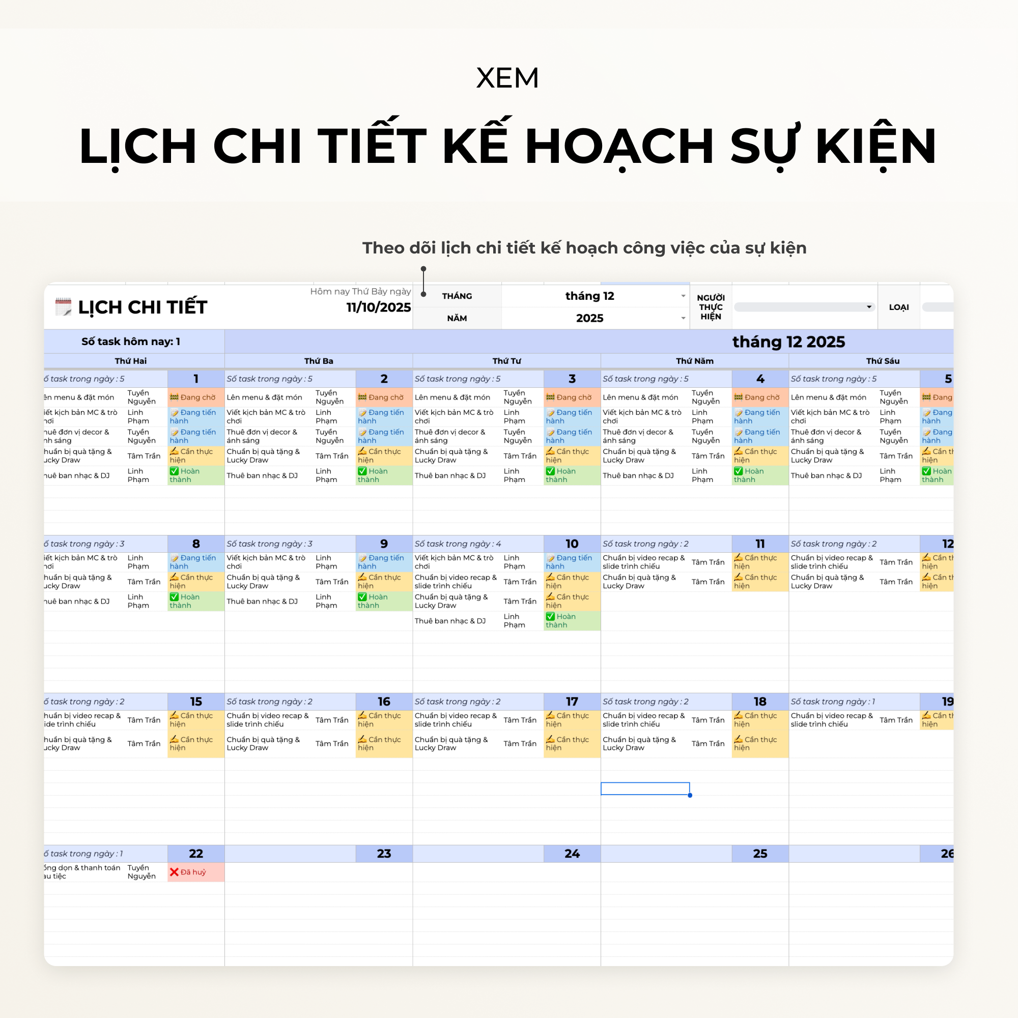 Kế hoạch – Quản lý sự kiện – Event Planner – Google sheets Template – Excel