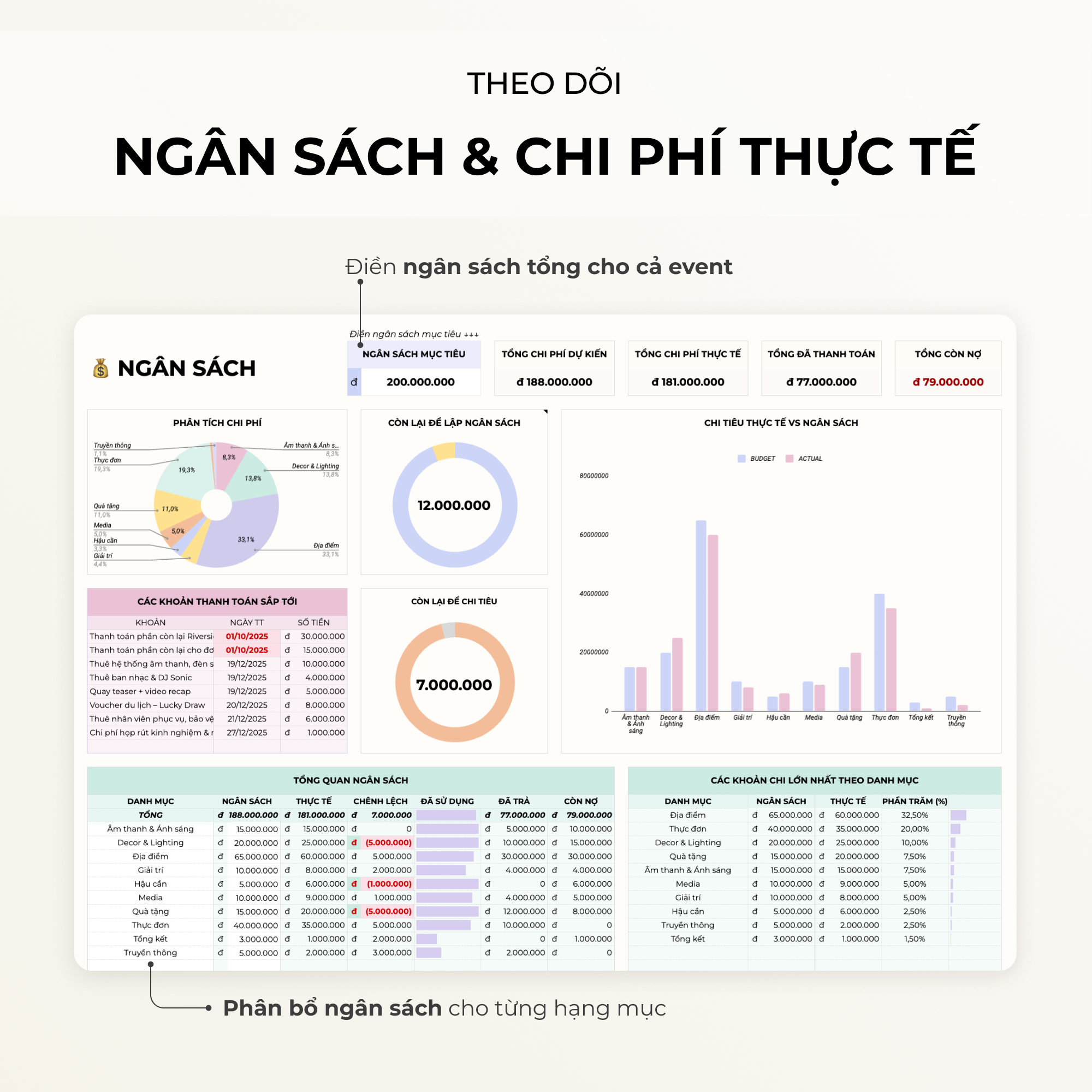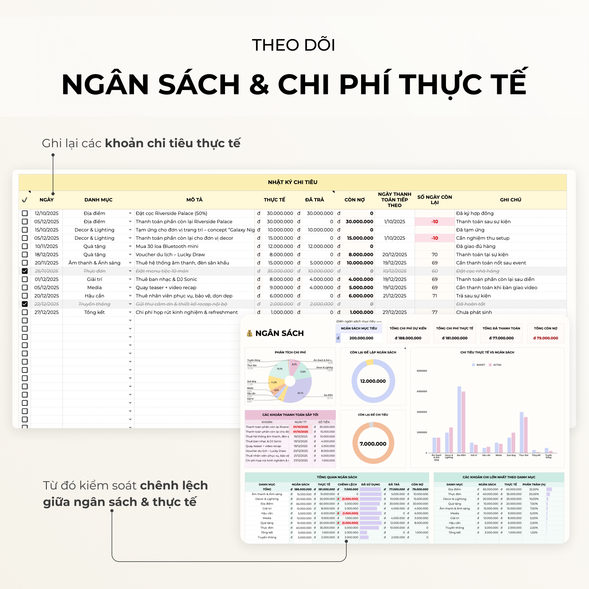 • Theo dõi các khoản chi thực tế, từ đó so sánh được giữa ngân sách và thực tế.